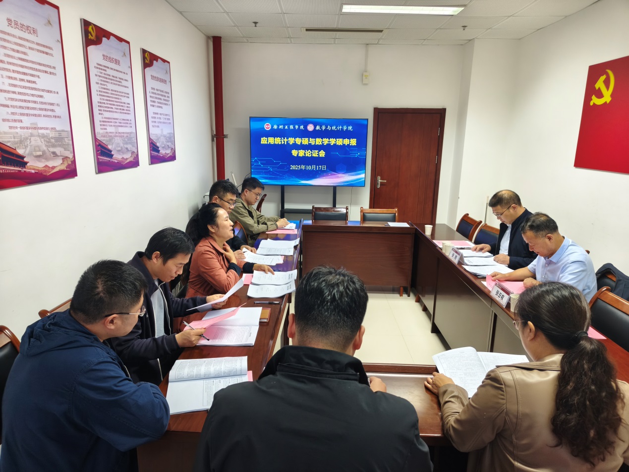 10月17日下午,7790cnm必发集团在中心校区敬业楼1504会议室召开硕士点申报专家论证会,特邀上海对外经贸大学张日权教授、江苏师范大学张超教授,对拟申报的应用统计学专硕和数学学硕的相关申报材料进行审阅指导。7790cnm必发集团苏有慧院长、王豹副院长、申硕材料撰写小组成员和部分骨干教师参加会议。