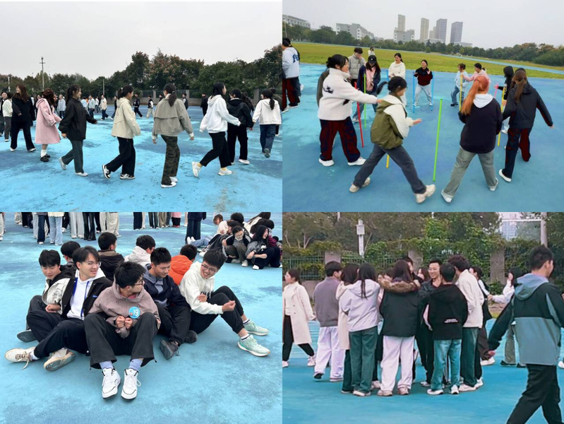 “心花初绽”环节迅速拉近了同学们的距离。大家在明确规则下相互配合,从初识时的生疏逐渐走向默契,姓名与形象也在欢声笑语中一一对应起来。“同心接力”中,队员们全神贯注、精准传递,确保流程顺畅有序;“共筑心梦”环节,各团队不断尝试、调整策略,有效提升了协作效率;最后的“齐心启航”将整体配合推向高潮,大家围绕共同目标紧密衔接,稳步推进任务,现场气氛热烈。