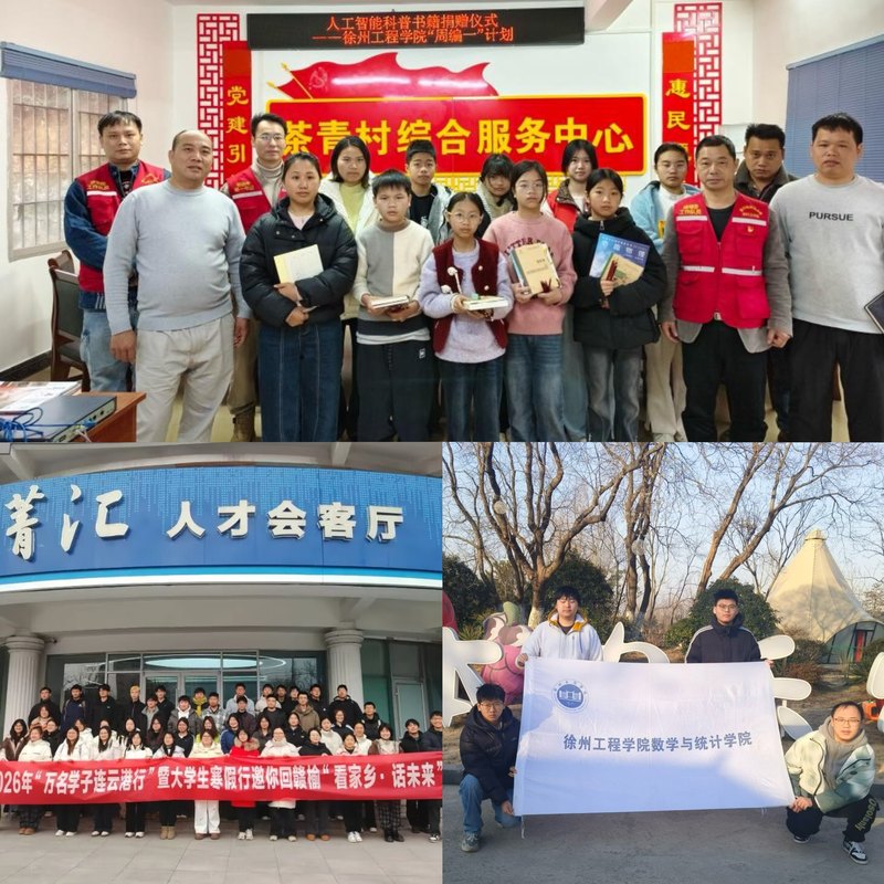 在支教帮扶一线,优秀学子赴中学参与信息学奥赛集训营,为中学生提供精准一对一编程指导,用专业力量助力基础教育提质增效;返乡学子则在乡村农家书屋开展人工智能科普书籍捐赠与阅读推广活动,让知识之光点亮乡村少年的成长之路。在基层治理与民生服务中,部分学子深入本地农场,积极投身秩序维护、儿童看护、餐饮服务等日常运营工作,以吃苦耐劳的作风展现青年担当;同学们担任寒托班志愿者,细致开展班级管理、学业辅导与趣味活动,切实缓解了双职工家庭的看护难题;还有学子主动参与社区“暖冬帮扶” 行动,为独居老人、困难家庭整理账目、解读惠民政策,用贴心服务传递邻里温情。此外,部分学子走进本地人力资源部门,协助开展大学生返乡就业政策宣传,为家乡人才引进与发展注入青春动能。