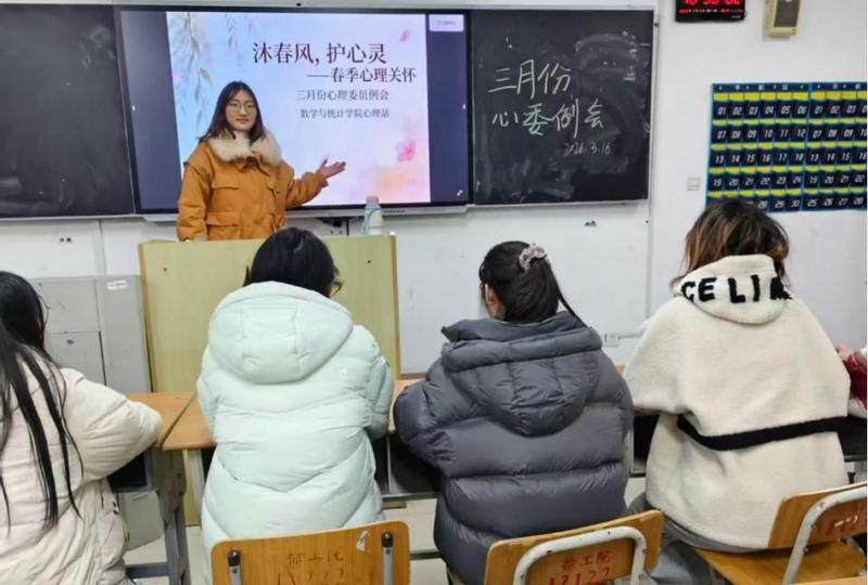 【春风聚力,心筑防线】召开“沐春风,护心灵”三月份心理委员例会,全面部署心理健康教育工作。会议由心理站站长主持,全体心理委员与心理站成员参会。会上对前期春季返校心理适应摸排、春日情绪疏导等工作进行总结,肯定各班心理委员的用心付出,同时指出关怀覆盖不足、活动形式单一等问题;随后结合春季学生情绪特点与新学期压力,重点部署“3・20”心理健康教育系列活动,明确心理委员在活动组织、班级宣传等环节的职责,强调要切实履行“勤观察、强科普、早预警”核心职责,筑牢班级心理安全防线。