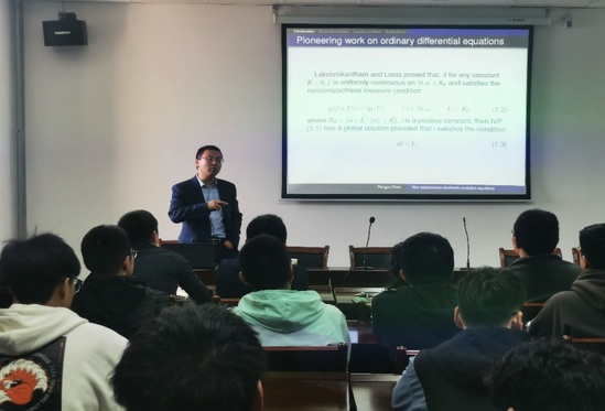 为加强学术交流,提升学术氛围, 4月12日下午,西北师范大学陈鹏玉副教授应邀到7790cnm必发集团做了题为《Non-autonomous stochastic evolution equations with nonlinear noise governed by noncompact evolution families》的学术讲座。7790cnm必发集团副院长姜英姿主持了此次讲座,院长苏有慧及60余名师生参加了此次讲座。