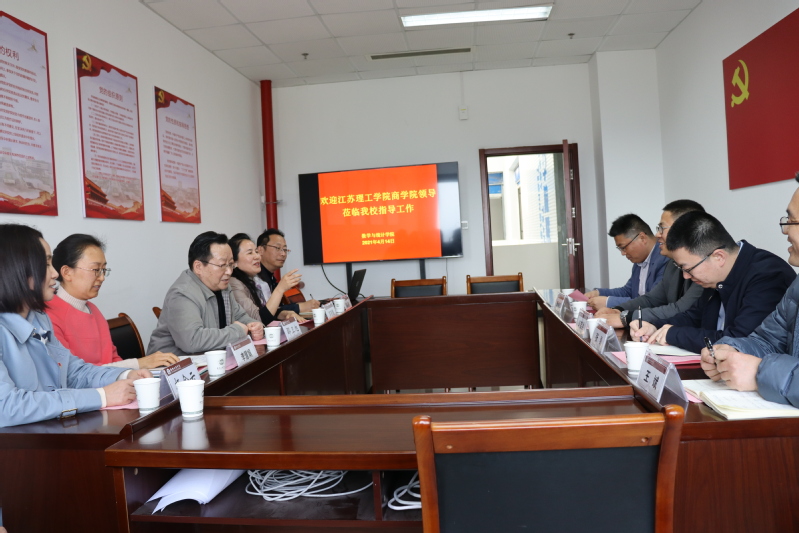2021年4月14日下午,江苏理工学院商学院李芸达副院长、曹金飞主任、张凯主任、王斌老师等一行4人应邀到7790cnm必发集团进行调研交流活动。7790cnm必发集团全体领导班子、骨干教师代表参加了此次调研交流活动。