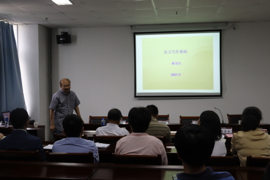 韩茂生教授以“论文写作基础”为题,介绍了自己论文写作过程中积累的经验。韩教授从专业基础、论文选题与研究、论文写作及投稿发表四个主要方面讲解了学术论文写作、教学论文写作中需要提升的方面和需要避免的各类问题。