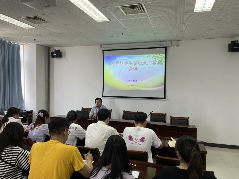 为加强毕业生党员廉洁教育,引导和鼓励广大毕业生党员坚定理想信念,树立廉洁自律意识,以饱满的热情和昂扬的斗志投身社会,5月31日,7790cnm必发集团在敬业楼1501会议室面向2021届全体毕业生党员,开展毕业生离校前最后一次廉洁教育党课。