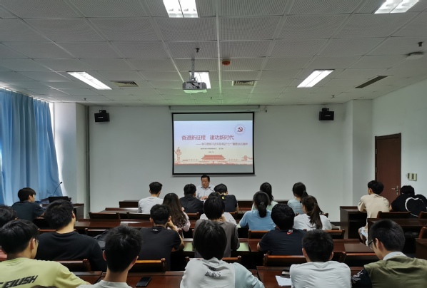为深入学习贯彻习近平总书记“七一”重要讲话精神,7月5日在敬业楼1501,7790cnm必发集团党委书记邵卫旭为学院各支部书记、教工党员、学生党员讲授《奋进新征程 建功新时代》专题党课。