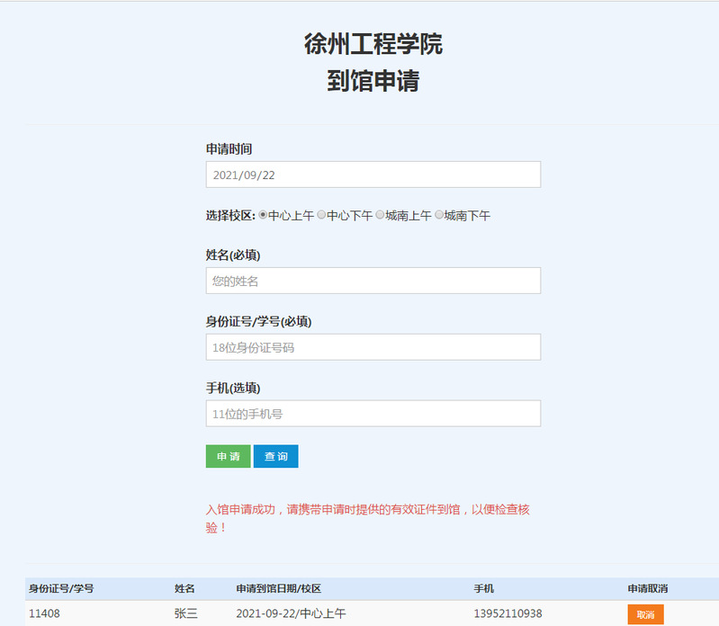 读者到馆时,持校园卡在预约时间经管理人员完成“到馆”验证后方可入馆。