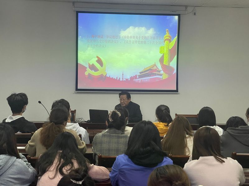 开班仪式后邵卫旭书记从党的十九届六中全会召开的大会概况、召开的时代背景(历史意义)、总结党的百年奋斗重大成就和历史经验的重要意义、全会中“四史”的重要论述、马克思主义中国化的历次飞跃、中国共产党百年奋斗的历史意义、中国共产党百年奋斗的宝贵经验、如何学习贯彻党的十九届六中全会精神及如何积极响应党中央的号召等十个方面详细地上了一堂生动的专题党课。邵书记说,伟大成就鼓舞人心,宝贵经验弥足珍贵,历史使命催人奋进;青年是国家的未来、民族的希望;这次全会总结了党的百年奋斗重大成就和历史经验,深刻回答了“中国共产党为什么能、马克思主义为什么行、中国特色社会主义为什么好”,青年学生要学习宣传贯彻好党的十九届六中全会精神,增加信心、增强斗志,做新时代堪当民族复兴重任的时代新人。