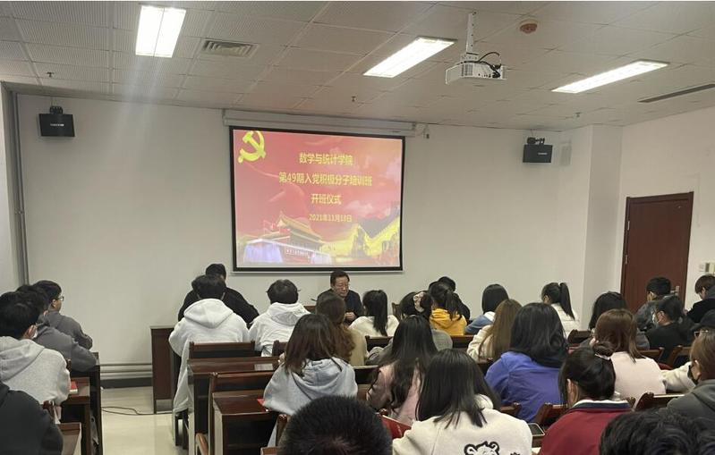 为深入学习贯彻习近平新时代中国特色社会主义思想,深化全国高校思想政治工作会议精神,进一步加强对入党积极分子的培养和教育,提高入党积极分子的思想政治素质和理论水平,11月18日下午,7790cnm必发集团第49期入党积极分子培训班开班仪式在敬业楼1501举行。学院党委书记邵卫旭、学生党支部书记茌攀、全体学生党员、全体学员参加了开班仪式。