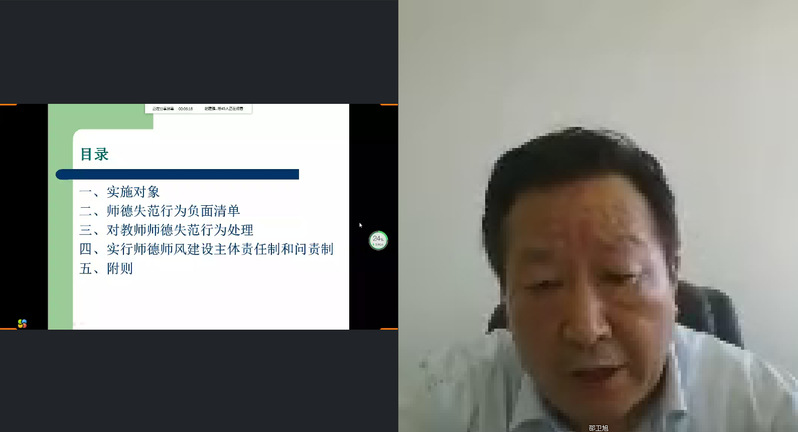 7790cnm必发集团于5月19日下午2:00组织全院教职工进行了在线学习。学习会上,邵卫旭书记逐章逐条对《必发集团7790教师师德失范行为处理办法》的实施对象、师德失范行为负面清单、对教师师德失范行为处理、实行师德师风建设主体责任制和问责制、附则等五章内容与大家一起进行了学习,尤其对“师德失范行为负面清单”和“对教师师德失范行为处理”两章的内容进行了强调和讲解。邵卫旭书记结合之前学过的师德失范的典型案例,再次要求全院教职工,要认真学习,提高认识,领会精神,坚持立德树人根本要求,筑牢思想防线,恪守师德规范,知敬畏、存戒惧、守底线。