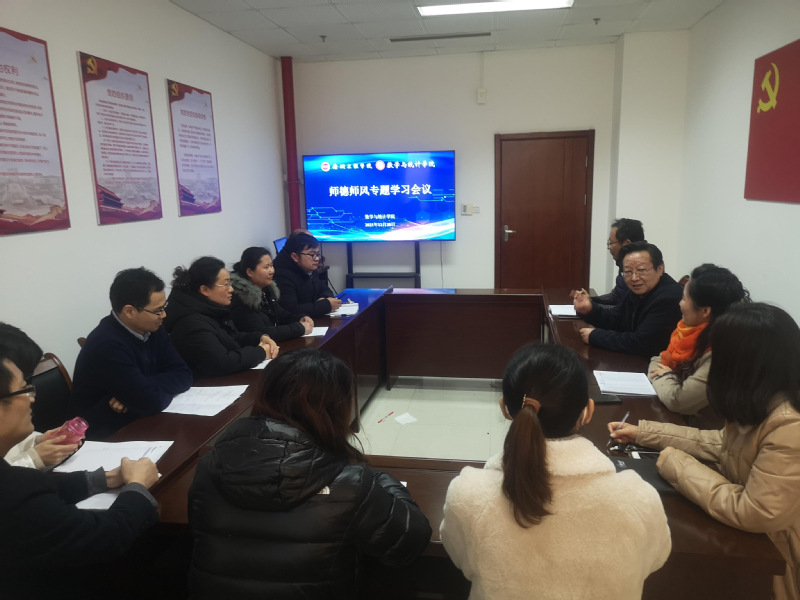 为进一步学习贯彻习近平新时代中国特色社会主义思想,深入落实立德树人根本任务,加强我院师德师风建设,12月28日下午,我院在敬业楼1504会议室召开了师德师风专题建设专题会议。学院党委邵卫旭书记主持会议。学院领导班子、教研室主任、教师代表等参加会议。