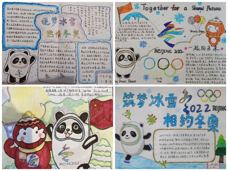 学院通过线上组织趣味DIY、冬奥会主题手抄报、线上云接力多种比赛活动形式举办了助力冬奥活动。在趣味DIY活动中考验了同学们的动手能力和想象力的同时,也确保了同学们对冬奥会有了一定的了解,充分展现中国传统文化与现代文化,营造了浓厚的文化自豪感。其次我院面向全体学生,以个人为单位,开展线上云接力活动。通过线下个人徒步走,线上数据云传递,模拟“2022冬奥会火炬传递路线”,大大调动了我院学生的积极性,使冬奥知识更加深入人心。我院还举办了冬奥会主题手抄报,同学们将对冬奥会吉祥物冰墩墩及对冬奥会的相关了解和祝福融入手抄报中,内容充实,画面美观,文字优美,色彩和谐。通过生动的语言、美丽的图案阐释了对冬奥会的认识与理解。