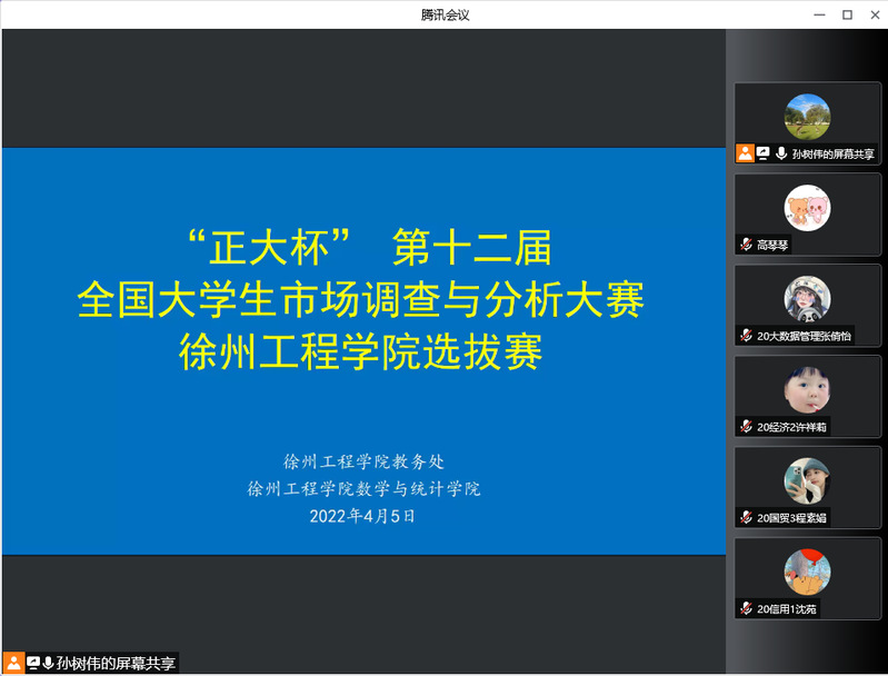 为引导大学生创新和实践,提高学生的组织、策划、调查实施和数据处理与分析等专业实战能力,培养学生的社会责任感、服务意识、市场敏锐度和团队协作精神,也为持续推进我院市场调查与分析大赛成绩再上新台阶,4月5日下午,7790cnm必发集团通过腾讯会议成功举办第十二届市场调查与分析大赛校内选拔赛。出席并担任此次比赛的评审老师有7790cnm必发集团院长苏有慧教授、副院长杨金云教授、教研室主任李翠霞副教授、赵建强教授、韩秀副教授、孙树伟老师、窦建君老师。选拔赛由孙树伟老师主持。