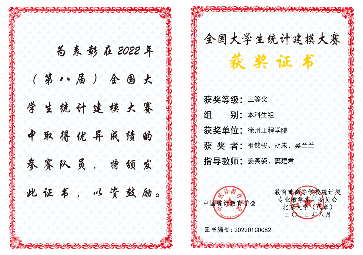 9月7日由中国统计教育学会、教育部高等学校统计学类专业教学指导委员会、全国应用统计专业学位研究生教育指导委员会联合主办,成都信息工程大学承办的2022年(第八届)全国大学生统计建模大赛总决赛圆满落幕。