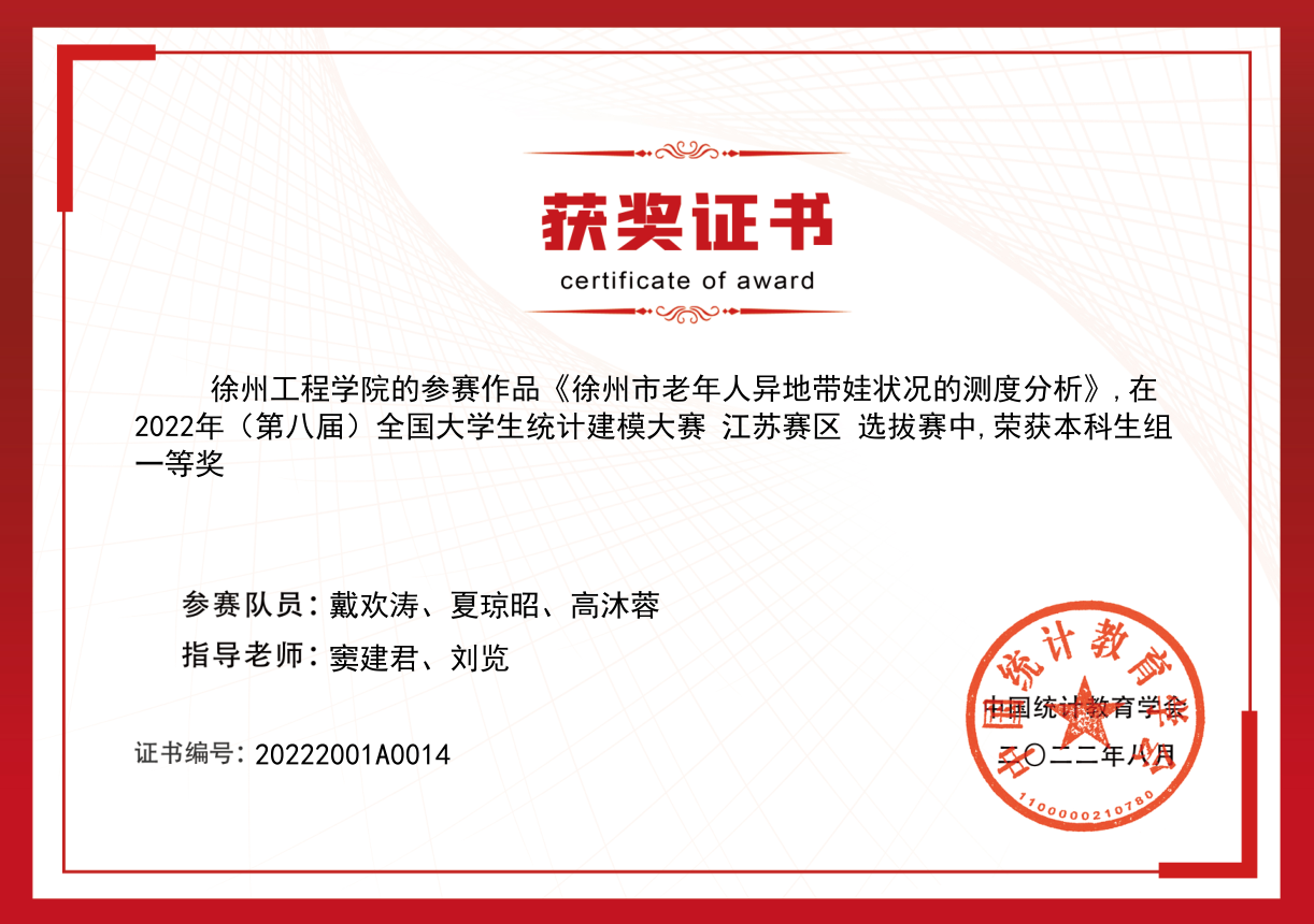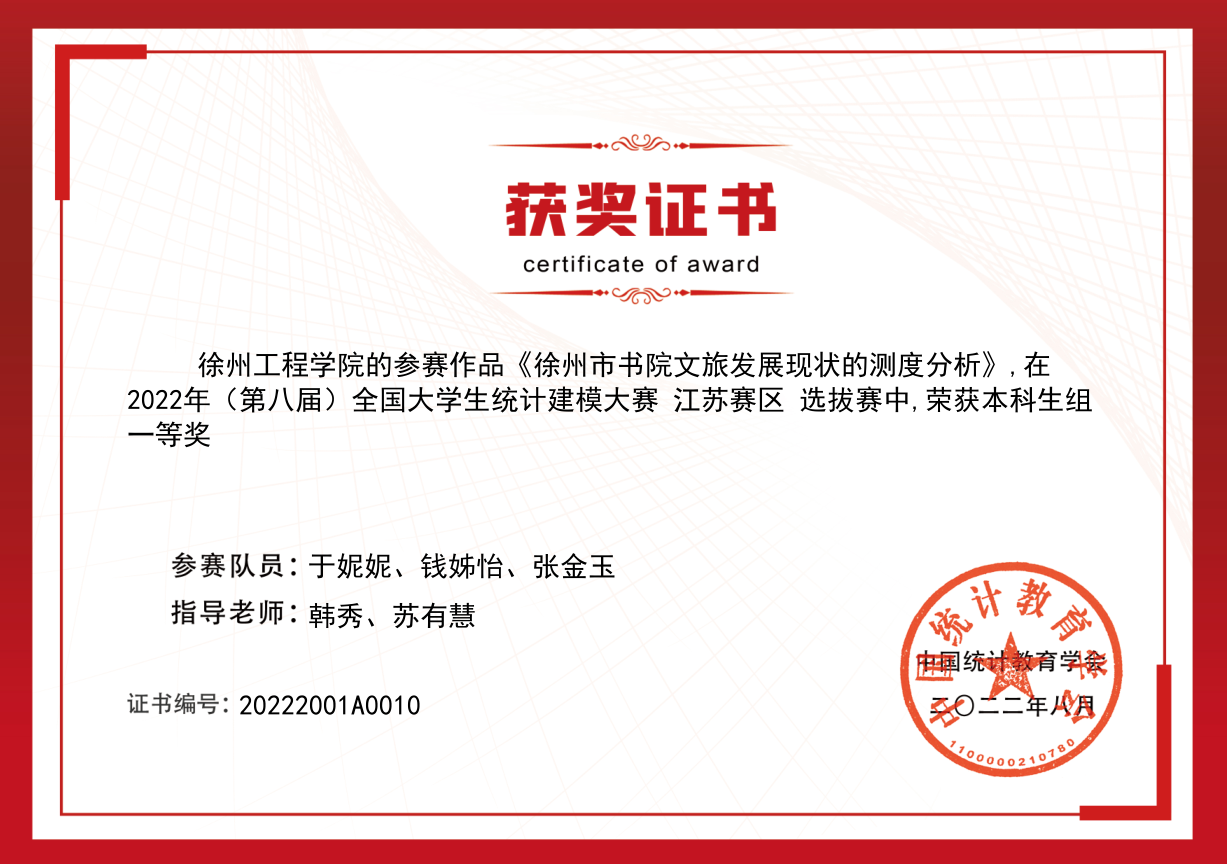本届大赛于2022年3月启动,主题为“构建新发展格局的统计测度”,分为省赛、国赛两阶段。全国共有来自北京大学、中国人民大学、北京师范大学、北京航空航天大学等460所院校,5760支队伍,1.73万人参赛。江苏省内12所本科院校的111支研究生队伍和170支本科生队伍共计843人参加了角逐,经过层层选拔,共决出本科生组全国一等奖40支、二等奖81支、三等奖266支。