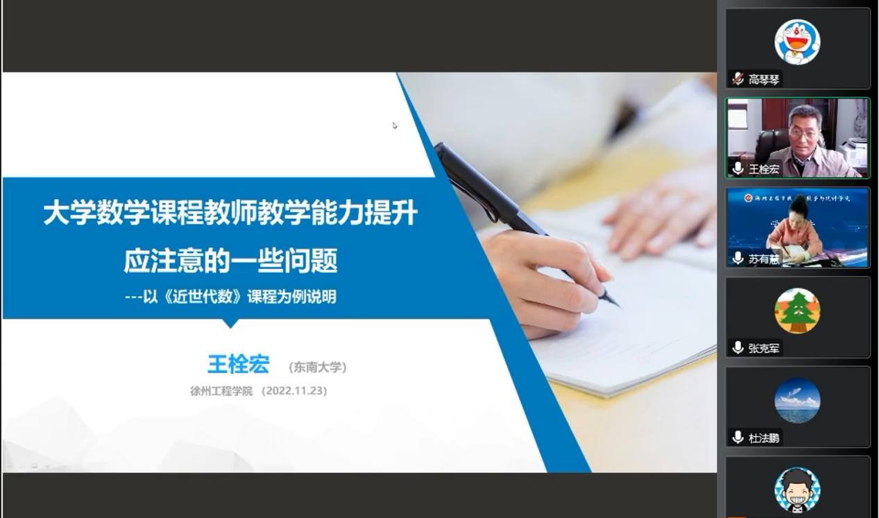 王栓宏教授以近世代数课程为例,从教学研究事项、群的定义与例子、数学类课程建设和建议等方面详细介绍了教师教学能力提升应注意的一些问题。
