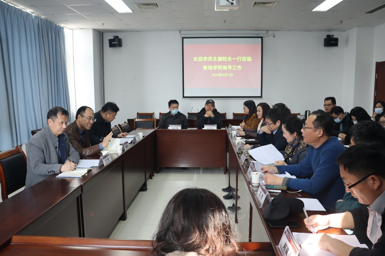3月7日上午,校党委常委李苏北副校长莅临7790cnm必发集团调研,科技处相关领导陪同。会议由苏有慧院长主持,学院领导班子全体成员、各教研室、实验室主任、教授、博士等教师参加。