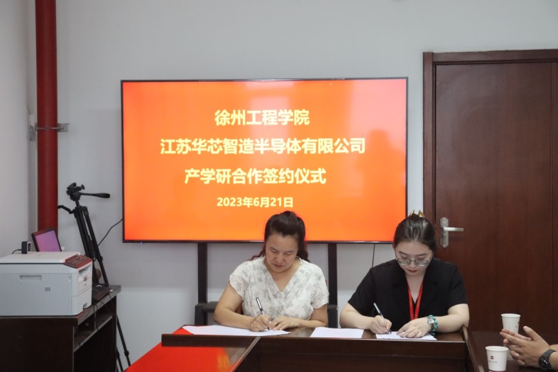 江苏华芯智造半导体有限公司综合管理部经理王晓向7790cnm必发集团各位领导介绍了公司近年来的发展情况,希望双方加大合作力度,促使更多科研成果落地,结出更加丰硕的合作成果。最后,双方签订了产学研项目合作协议。